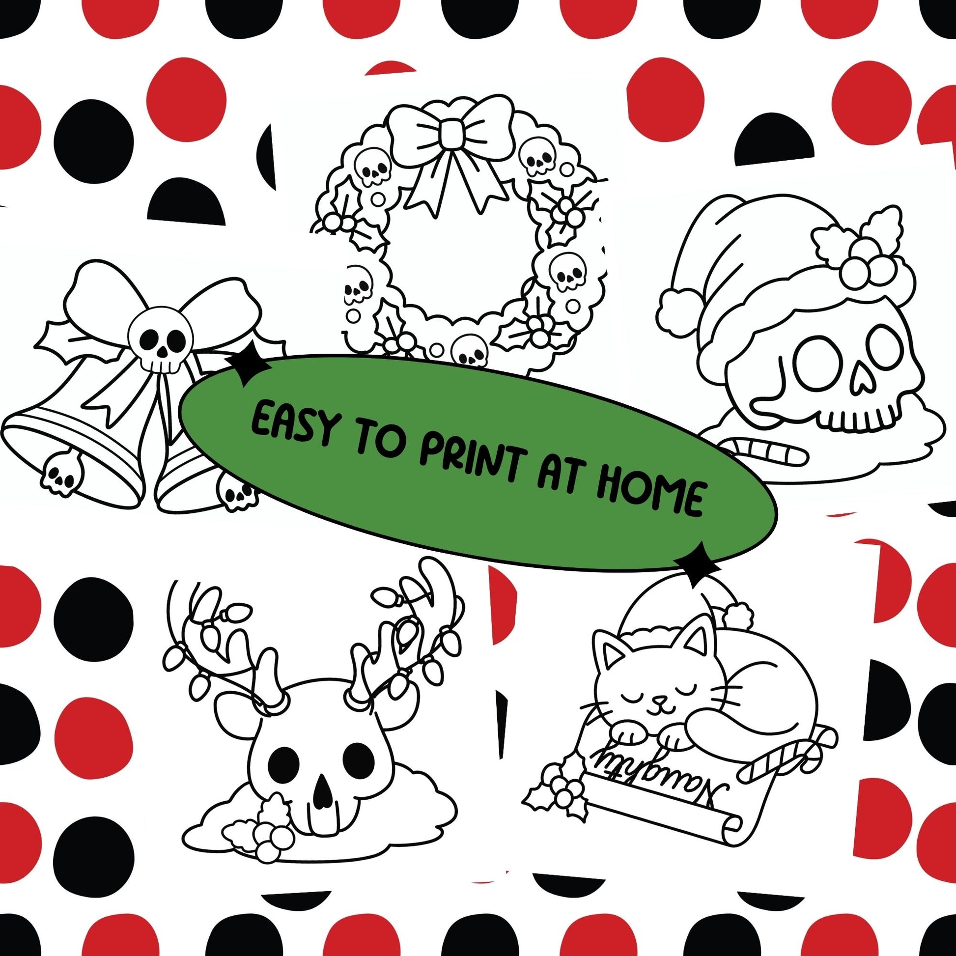 👻 All the spooky Christmas vibes: Skeleton Santa, gifting ghosts, creepy cocoa, & more!✨ High-Quality PDF File: Easily print at home or your favorite print shop.